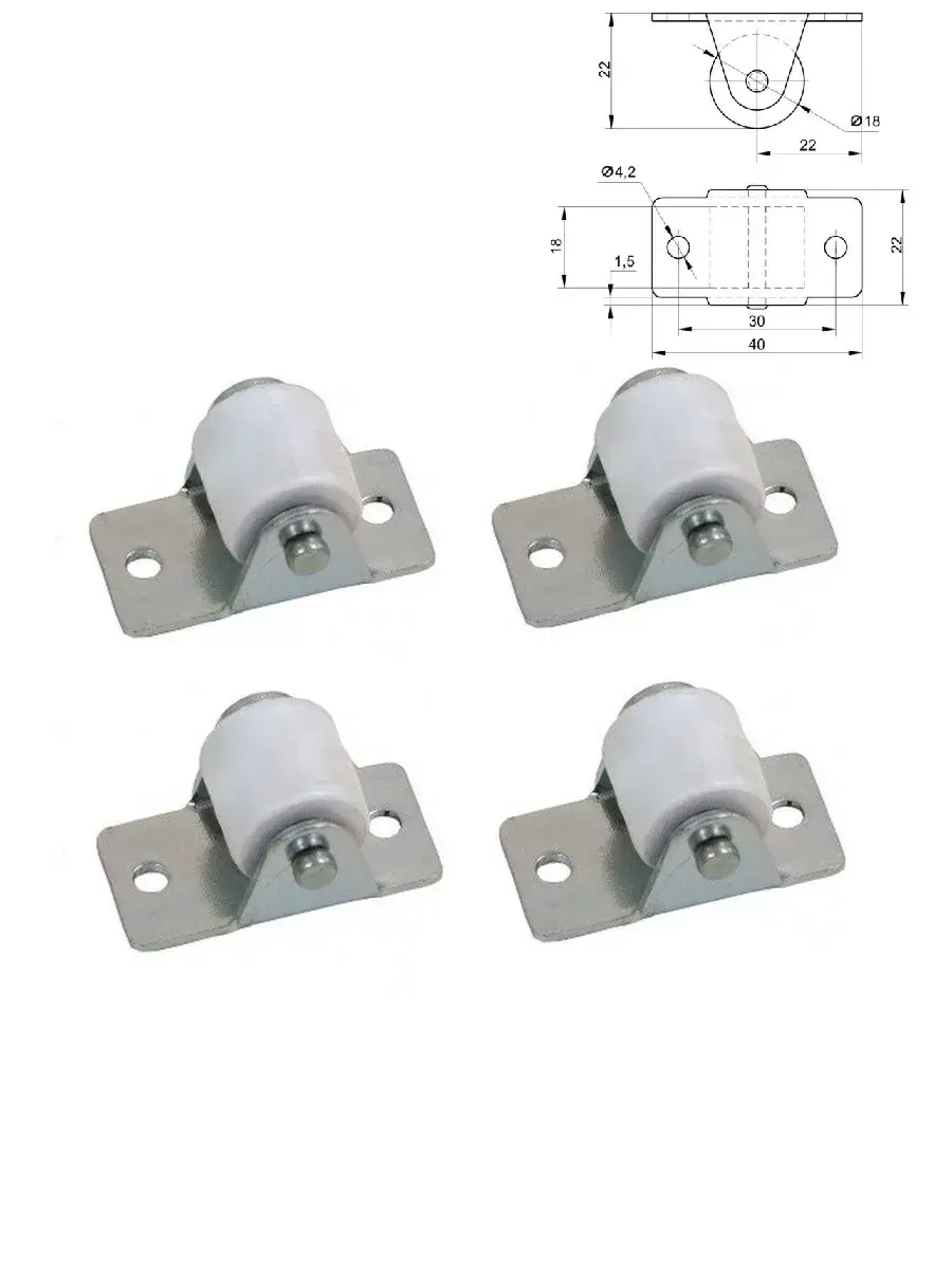 Колеса мебельные белые – 4 шт + комплект саморезов в подарок
