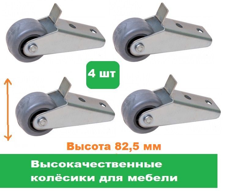 Набор колёсиков отлично подойдут к любой мебели и прекрасно впишутся в Ваш интерьер. Они подходят для диванов, кресел, кроватей, кушеток, пуфов и других видов мебели. Набор состоит из 4 - х колёс, высотой 82,5 мм. Колёса выполнены из стали и пластика, высокого разрешения, прочные, крепкие, прослужат очень долго. Набор колёс изготовлен качественно, выполнен в привлекательном классическом стиле, который украсит мебель и интерьер. Ролики неповоротные, обладают надёжным креплением, выдерживают существенную нагрузку до 25 кг. Преимущества опоры широкий ролик не оставляет следов на напольном покрытии. Компактная конструкция практически незаметна после установки. Легко фиксируется на плоском основании дивана с помощью мебельного крепежа. Саморезы для крепления выбирают исходя из диаметра отверстий на платформе. Заходите в наш магазин у нас большой ассортимент товаров и Вы можете подобрать любые мебельные опоры любых размеров.