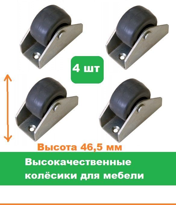 Набор колёсиков отлично подойдут к любой мебели и прекрасно впишутся в Ваш интерьер. Они подходят для диванов, кресел, кроватей, кушеток, пуфов и других видов мебели. Набор состоит из 4 - х колёс, высота 46,5 мм. Колёса выполнены из стали и пластика, высокого разрешения, прочные, крепкие, прослужат очень долго. Набор колёс изготовлен качественно, выполнен в привлекательном классическом стиле, который украсит мебель и интерьер. Ролики неповоротные, обладают надёжным креплением, выдерживают существенную нагрузку до 25 кг. Преимущества опоры широкий ролик не оставляет следов на напольном покрытии. Компактная конструкция практически незаметна после установки. Легко фиксируется на плоском основании дивана с помощью мебельного крепежа. Саморезы для крепления выбирают исходя из диаметра отверстий на платформе. Заходите в наш магазин у нас большой ассортимент товаров и Вы можете подобрать любые мебельные опоры любых размеров.