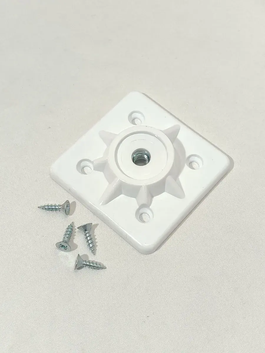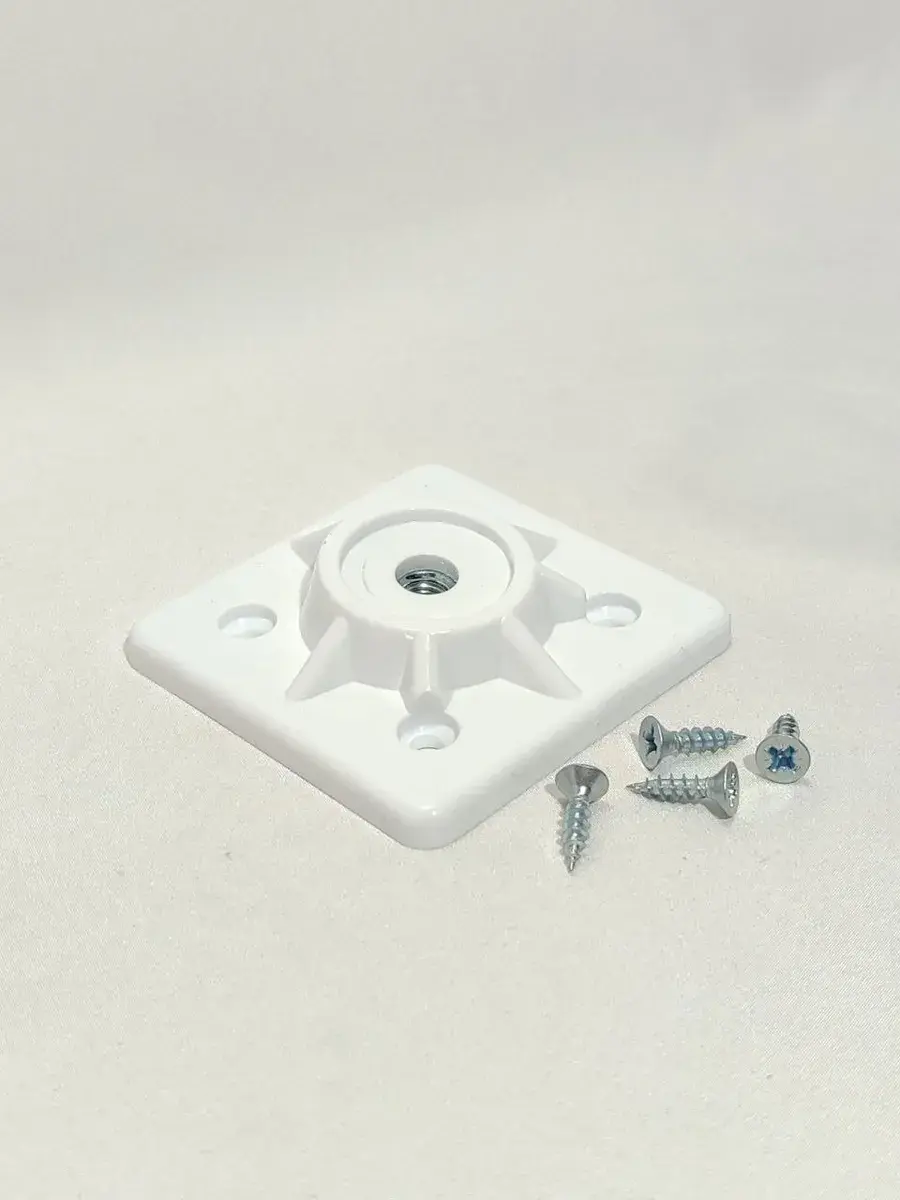 Универсальное пластиковое крепление (монтажная площадка) — это простое и надежное решение для сборки или ремонта мебели своими руками. Идеально подходит для установки деревянных или металлических ножек с резьбой М8 на столы, стулья, табуреты, пуфы и тумбы.