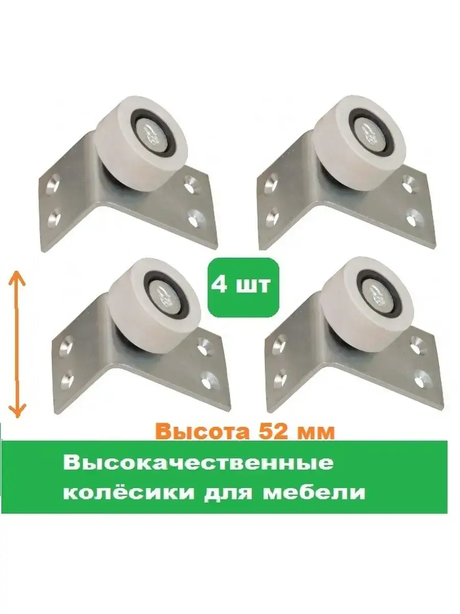 Они подходят для диванов, кресел, кроватей, кушеток, пуфов и других видов мебели. Набор состоит из 4 - х колёс, высота 52 мм.