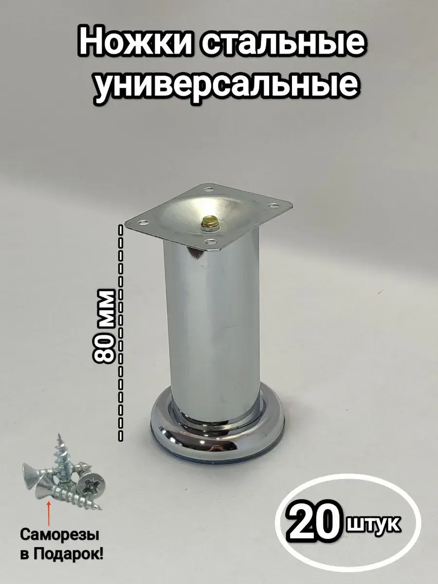 Комплект мебельнх ножек состоит из 20 штук, крепить при помощи саморезов.