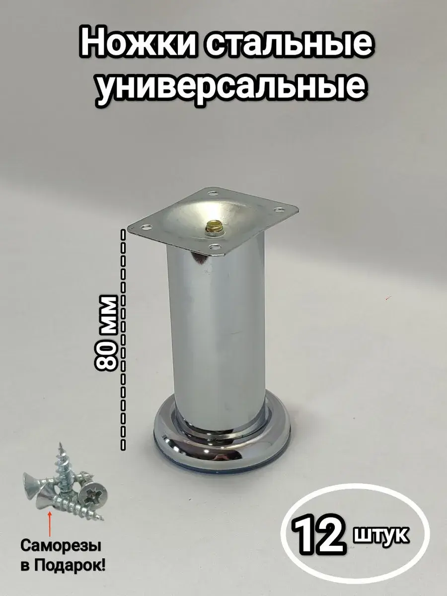 Комплект мебельнх ножек состоит из 12 штук, крепить при помощи саморезов.