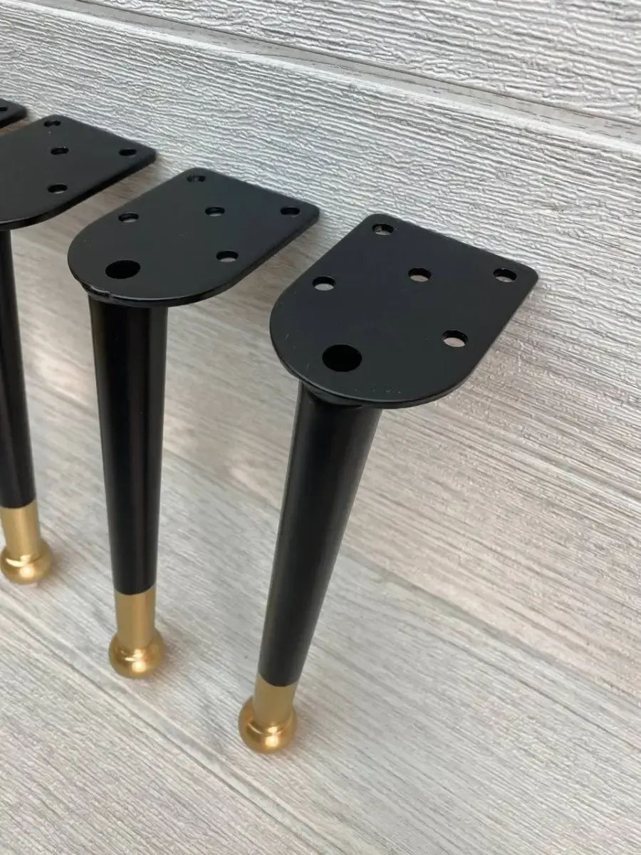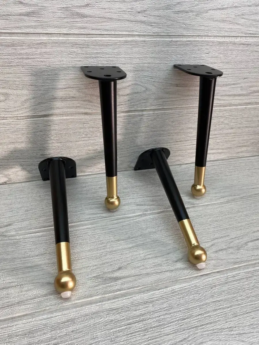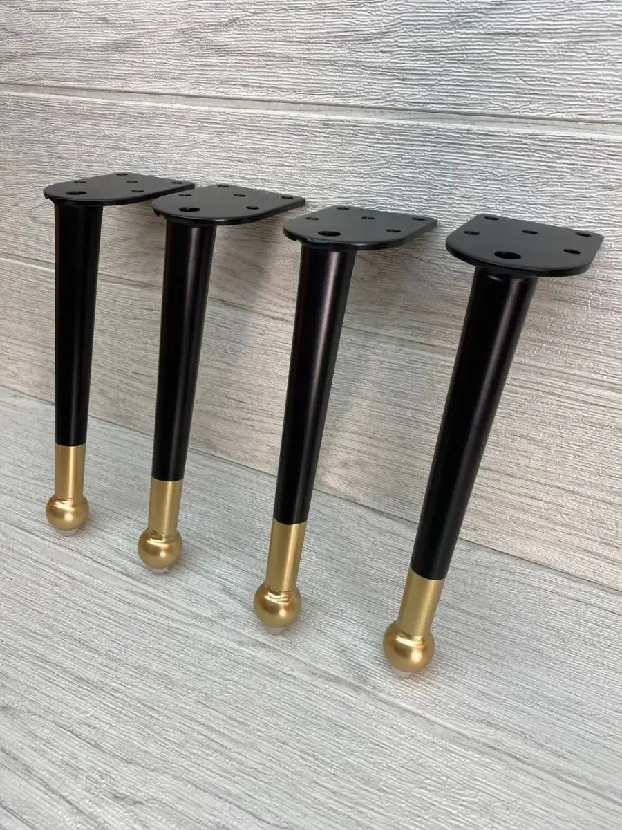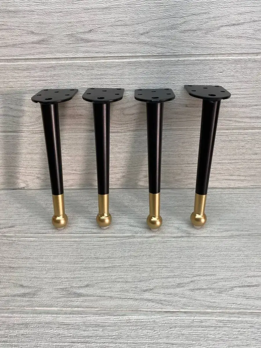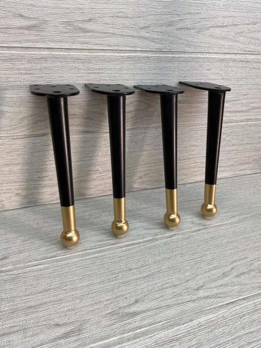 Ножки для мебели стальная, для диванов и кресел 20 см 4 шт. Покрытие гальваника, цвет черный с золотом. Опоры нерегулируемые мебельные из стали идеально подходят к любой мебели. Опоры для дивана, опоры металлические для кресла, опоры мебельные нерегулируемые для стула, ножки мебельные металл для стола, опоры декоративные для банкеток, ножки черные с золотом для пуфов, комодов, ножки для офисной мебели, журнального столика, кухонного стола, компьютерных столов и стульев. Фигурные ножки для кухонной мебели, корпусной мебели, кроватей, гостиной, ванны, барных стоек. Фурнитура имеет современный дизайн, благодаря золотому наконечнику отлично впишутся к любому интерьеру. Набор мебельной фурнитуры имеют нагрузку до 150 кг. Благодаря высокому качеству они очень крепкие, износостойкие, долго сохраняют первоначальный товарный вид. Комплект мебельных ножек состоит из 4 опор крепить при помощи саморез. Заходите в наш магазин у нас большой ассортимент товаров.