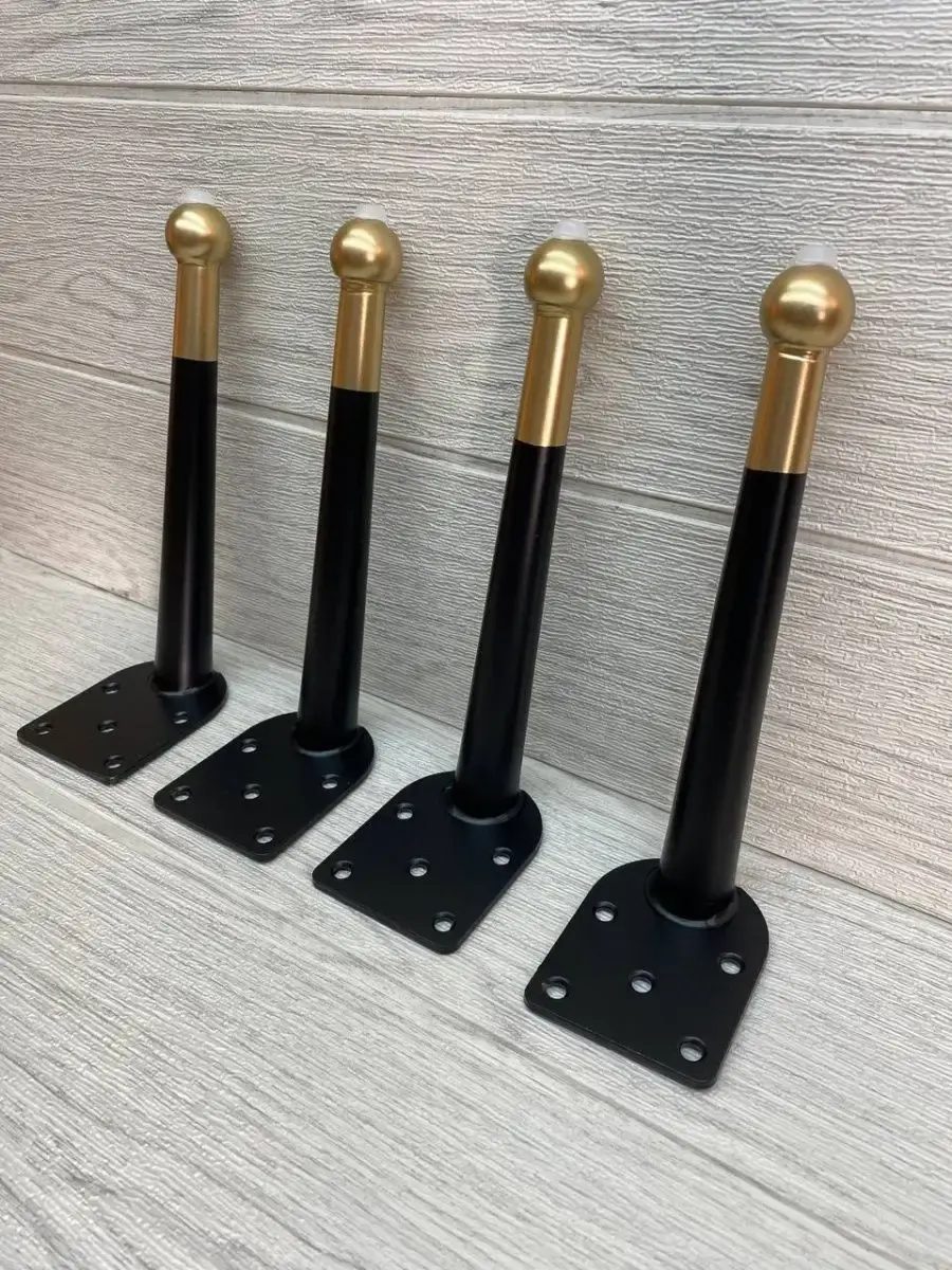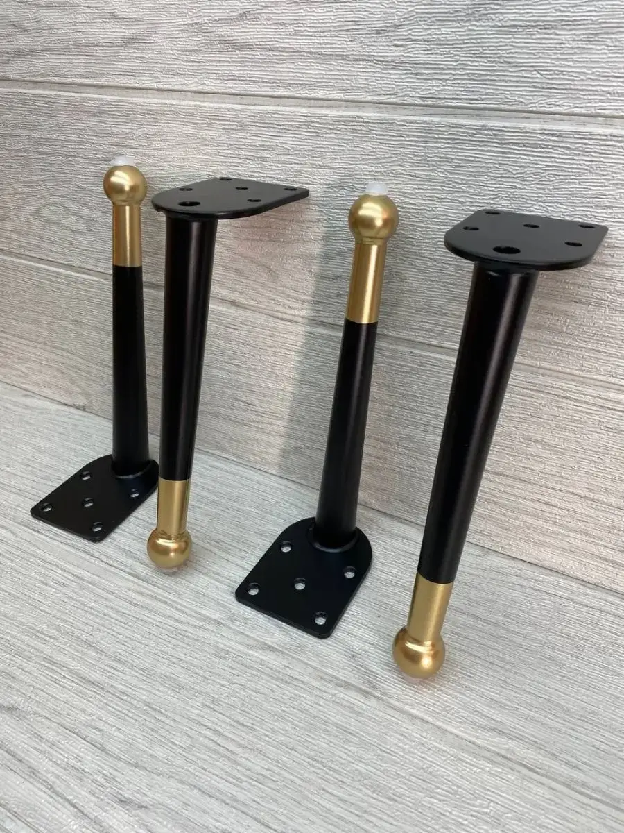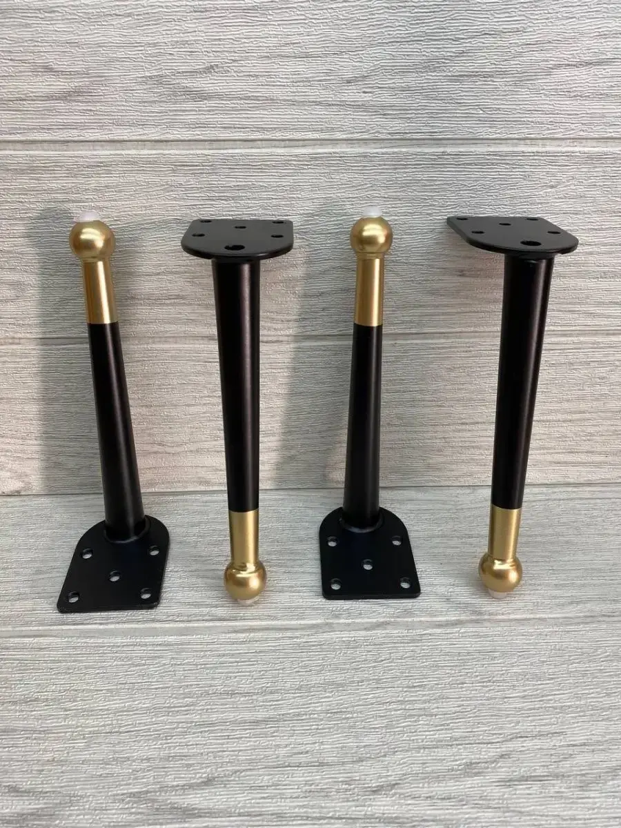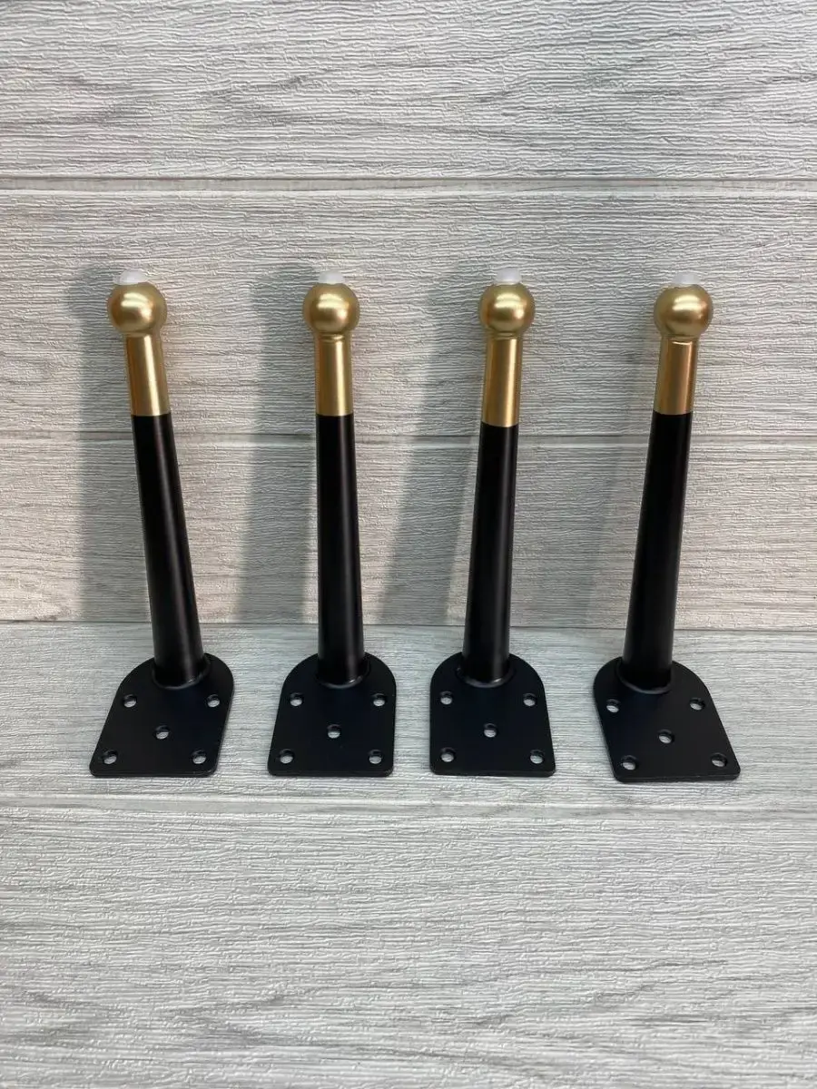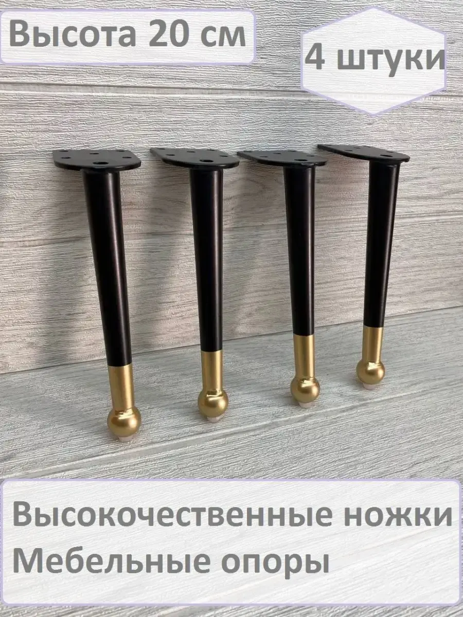 Ножки для мебели стальная, для диванов и кресел 20 см 4 шт. Покрытие гальваника, цвет черный с золотом. Опоры нерегулируемые мебельные из стали идеально подходят к любой мебели. Опоры для дивана, опоры металлические для кресла, опоры мебельные нерегулируемые для стула, ножки мебельные металл для стола, опоры декоративные для банкеток, ножки черные с золотом для пуфов, комодов, ножки для офисной мебели, журнального столика, кухонного стола, компьютерных столов и стульев. Фигурные ножки для кухонной мебели, корпусной мебели, кроватей, гостиной, ванны, барных стоек. Фурнитура имеет современный дизайн, благодаря золотому наконечнику отлично впишутся к любому интерьеру. Набор мебельной фурнитуры имеют нагрузку до 150 кг. Благодаря высокому качеству они очень крепкие, износостойкие, долго сохраняют первоначальный товарный вид. Комплект мебельных ножек состоит из 4 опор крепить при помощи саморез. Заходите в наш магазин у нас большой ассортимент товаров.