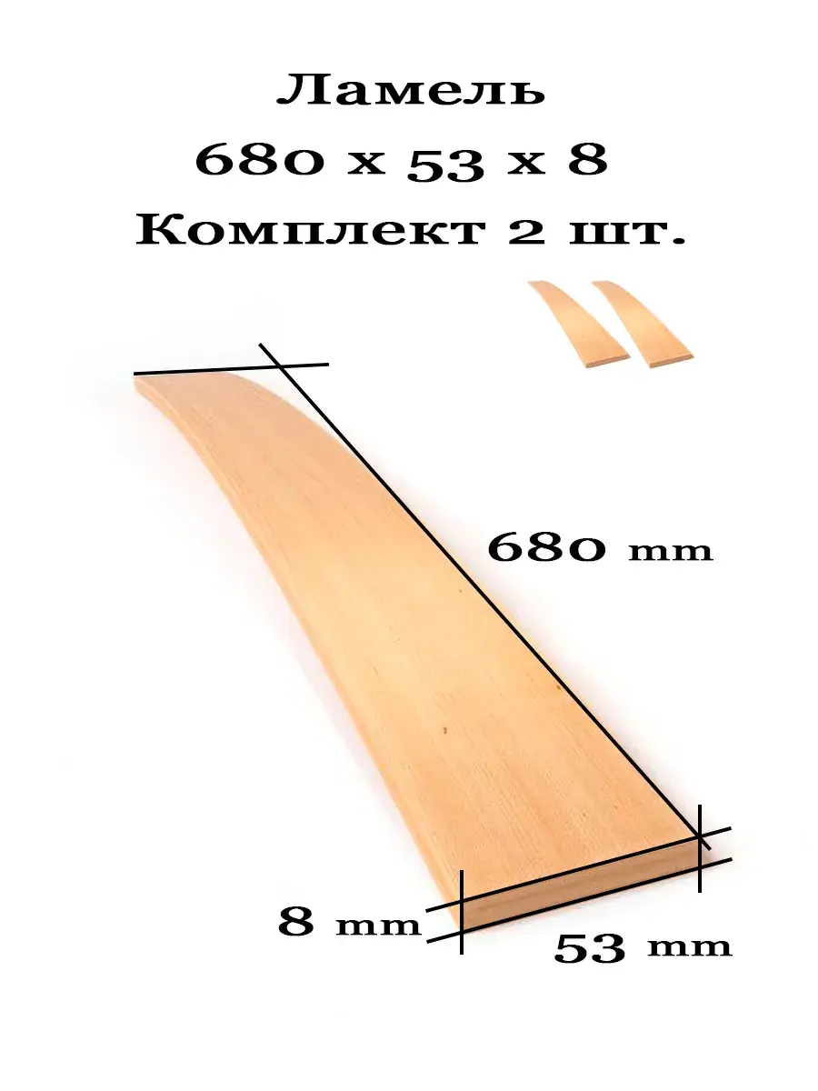 Ламели (латы) для кровати, дивана размер 680х53х8 мм - 2 шт