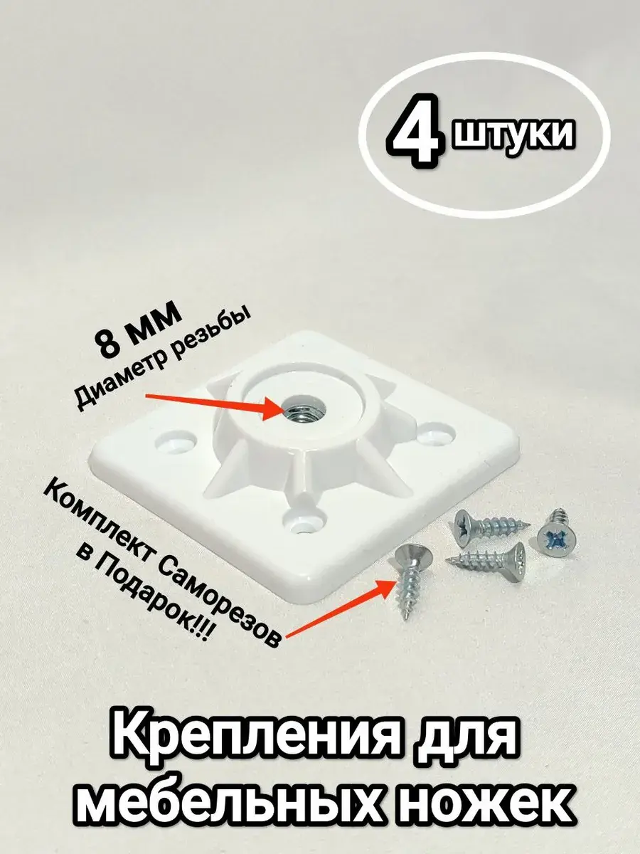 Универсальное пластиковое крепление (монтажная площадка) — это простое и надежное решение для сборки или ремонта мебели своими руками. Идеально подходит для установки деревянных или металлических ножек с резьбой М8 на столы, стулья, табуреты, пуфы и тумбы.