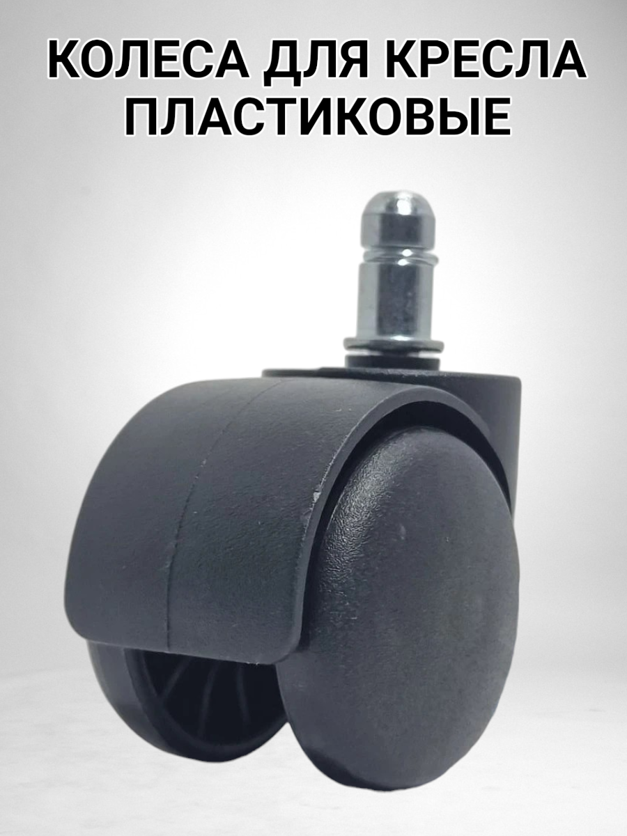 Стандарт: шток 11 мм, длина 20 мм, диаметр ролика 50 мм. Подходит для 90% офисных кресел (кроме IKEA со штоком 10 мм).