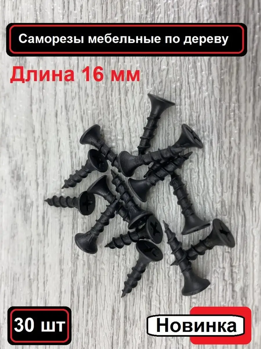 Саморезы мебельные по дереву 16 мм. В комплект входит 30 штук. Заходите в наш магазин у нас большой ассортимент товаров и Вы можете подобрать любые мебельные опоры любых размеров.