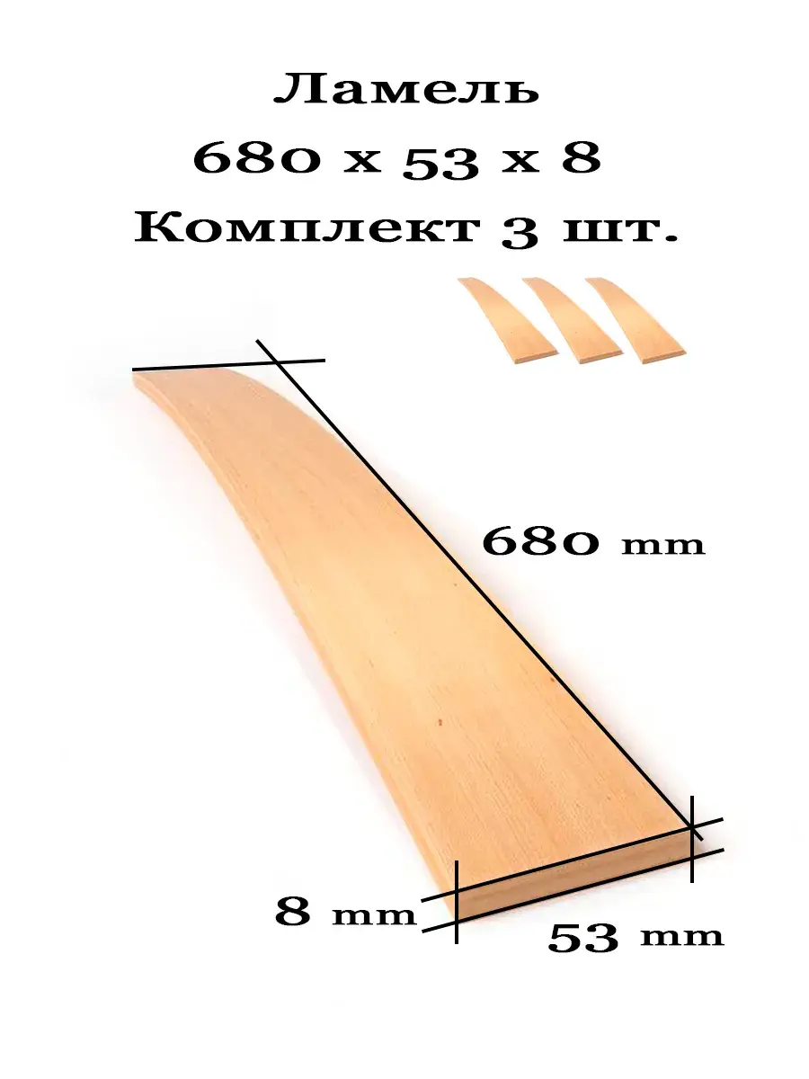 Ламели (латы) для кровати, дивана размер 680х53х8 мм - 3 шт